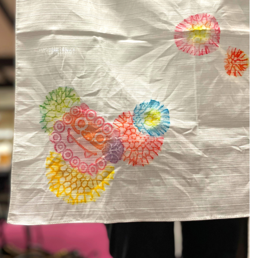 ハンカチなどの美しい小物や着物、帯の購入と、サンゴ染めの体験ができるお店です。