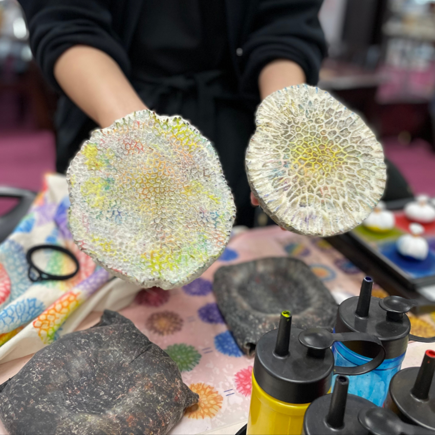 スタッフさんが丁寧に説明してくださるので、お友達とも家族との思い出作りにもぴったりのサンゴ染め!