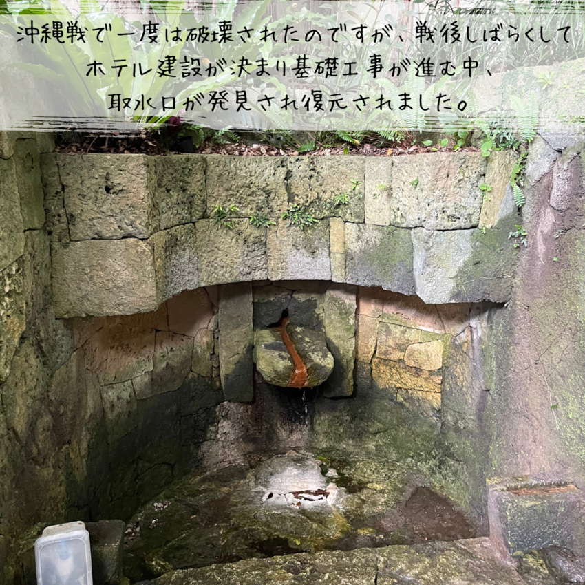 ホテル建設が決まり基礎工事が進む中、取水口が発見され復元されました。