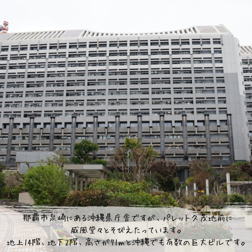 那覇市泉崎にある沖縄県庁舎ですが、パレット久茂地前に威風堂々とそびえたっています。