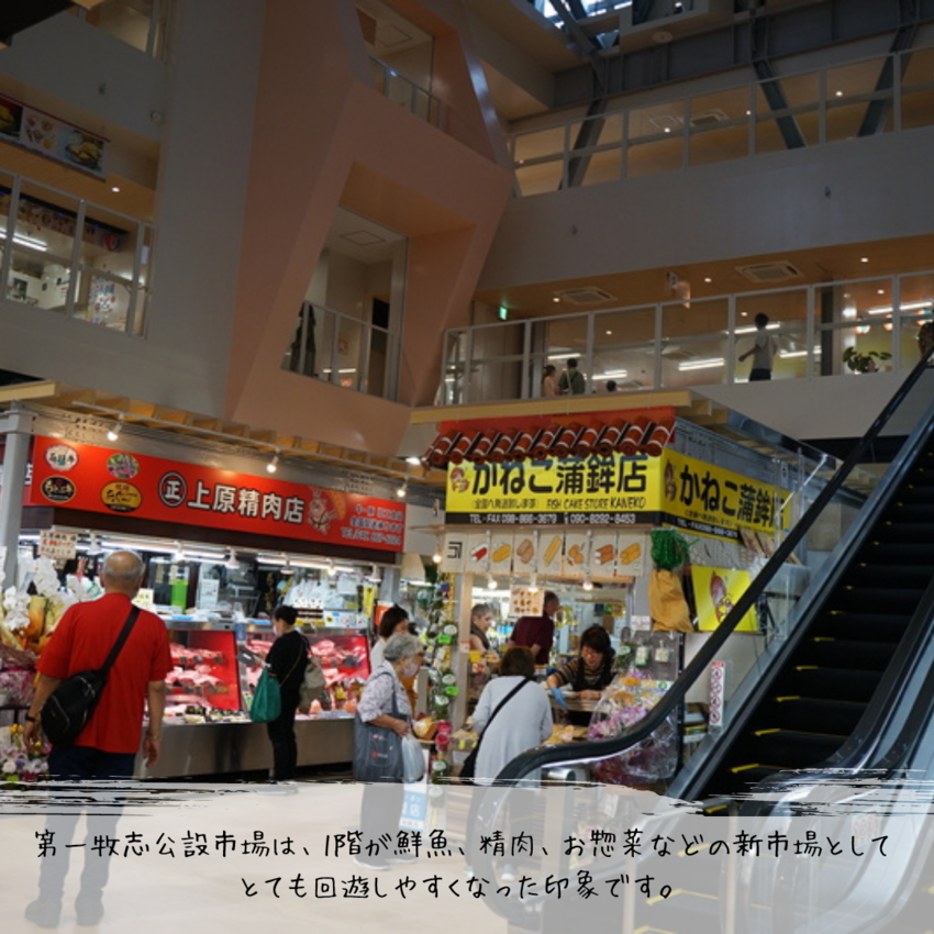 第一牧志公設市場は、1階が鮮魚、精肉、お惣菜などの新市場として