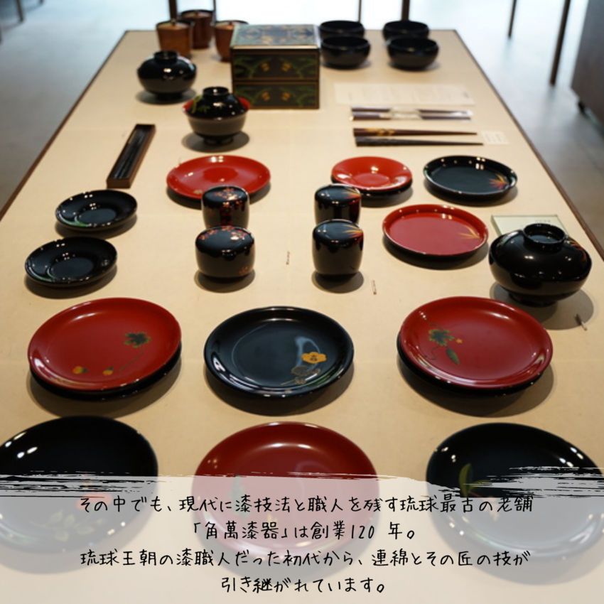 その中でも、現代に漆技法と職人を残す琉球最古の老舗「角萬漆器」は創業120 年。