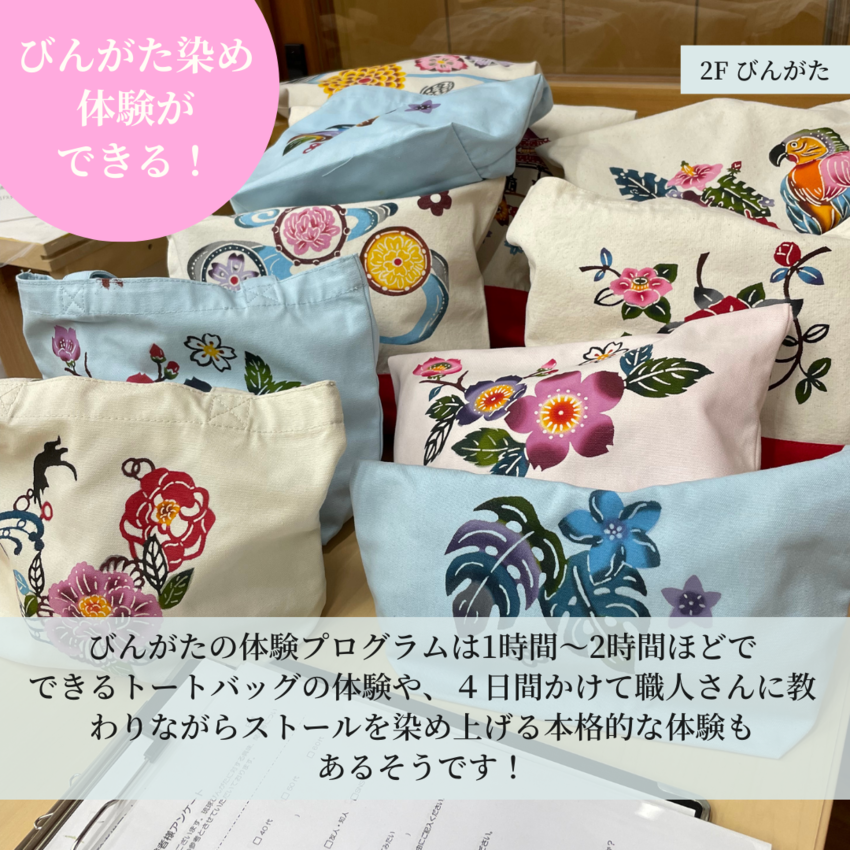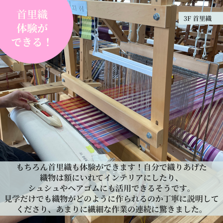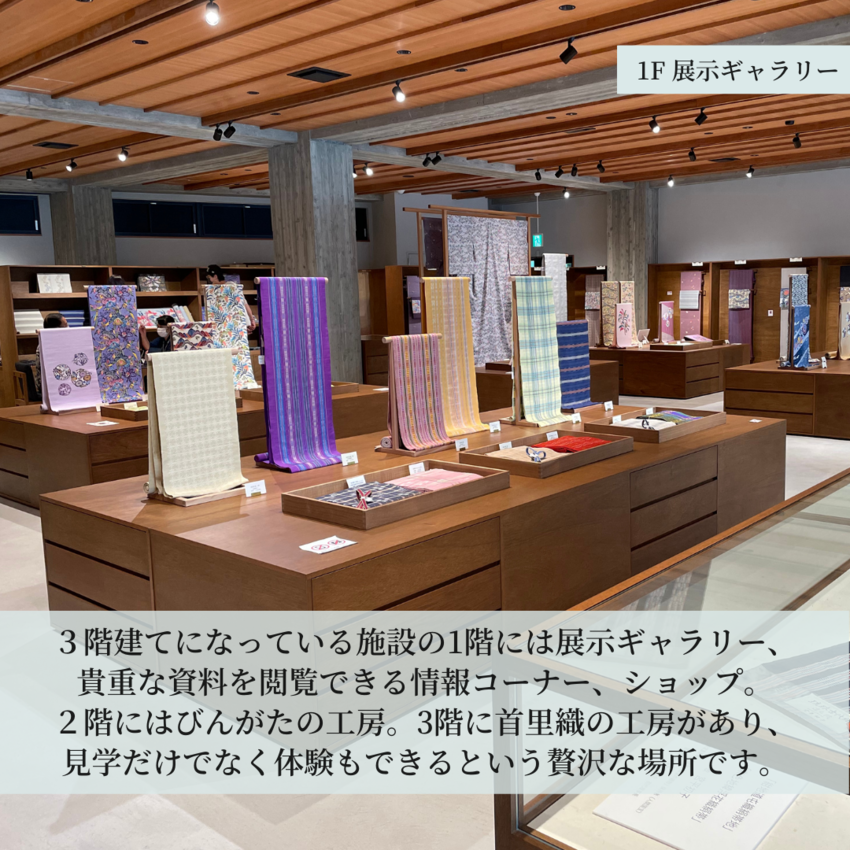 こちらではびんがたと首里織の体験プログラムもあり、実際に作りながら伝統工芸の奥深さを自分の手で知ることもできます。なんと4日間本格的に体験するコースもあるそうです!ご興味ある方は是非一度体験してみてください。