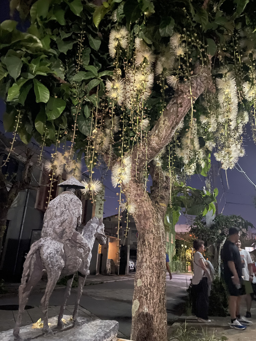 馬場通りは「サガリバナ並木」と呼ばれ約300mの通り沿いに30本ほどのサガリバナが並んでいます。ふわふわとした花が列になって垂れ下がっている様子はとても美しく、甘い匂いがするためなんだか夢を見ているような幻想的な雰囲気を味わえます。