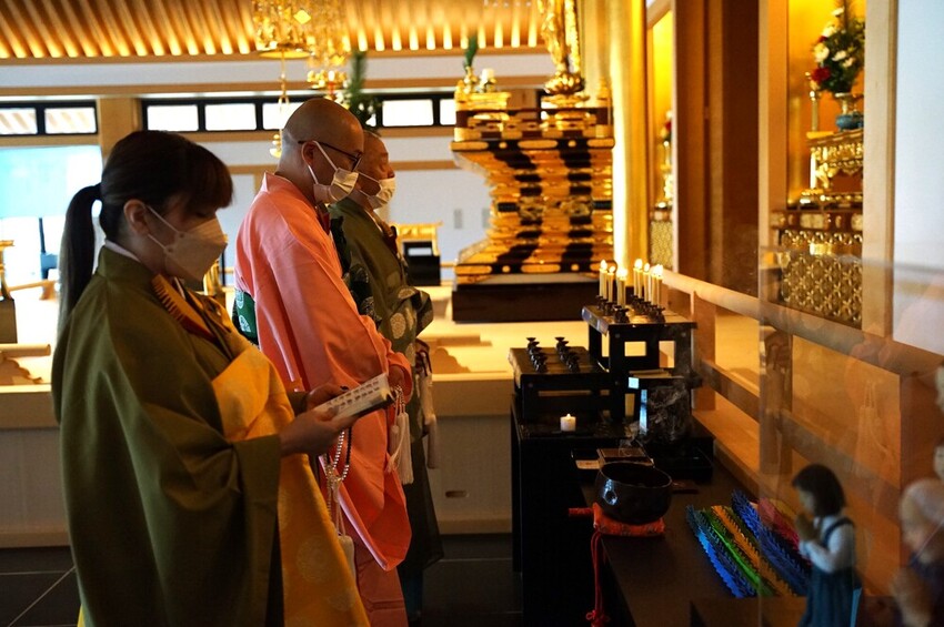 当日は、本堂の右手にある魂魄の塔を模した常設祭壇に、特別な慰霊台を設置し、