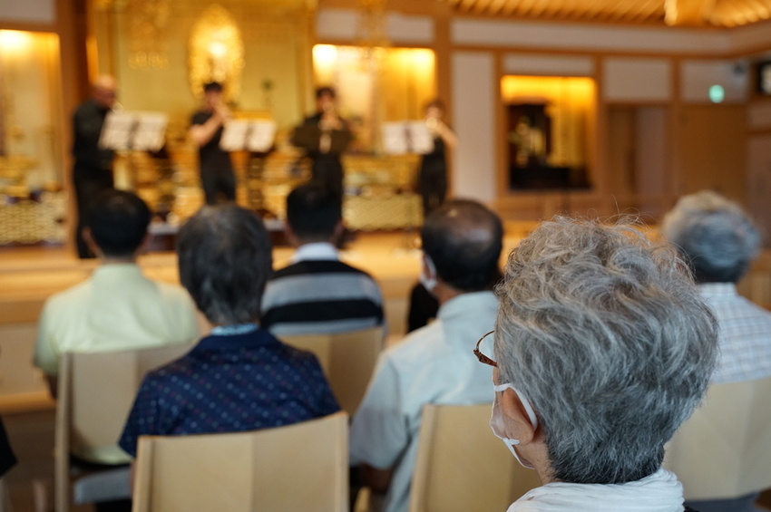 本日は、8月9日に行われた本堂でのトランペットミニコンサートをご紹介します。