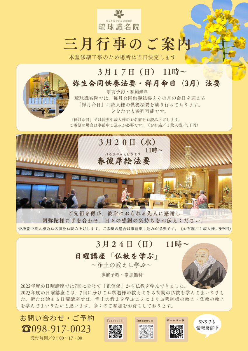 ●三月弥生合同供養法要・祥月命日(三月)法要