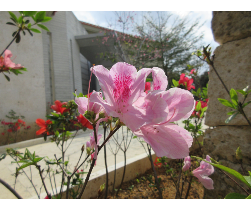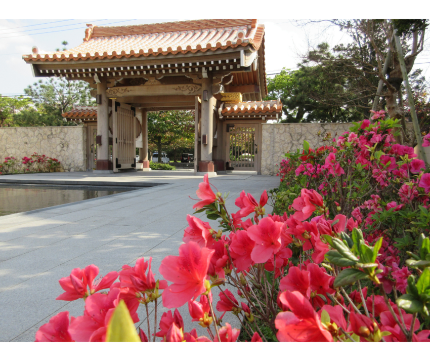 春づいてきた沖縄、琉球識名院の境内に咲いているケラマツツジが満開です。赤やピンク・白など色とりどりに彩られたツツジが鮮やかです。散歩がてらに立ち寄ってみてはいかがでしょうか。