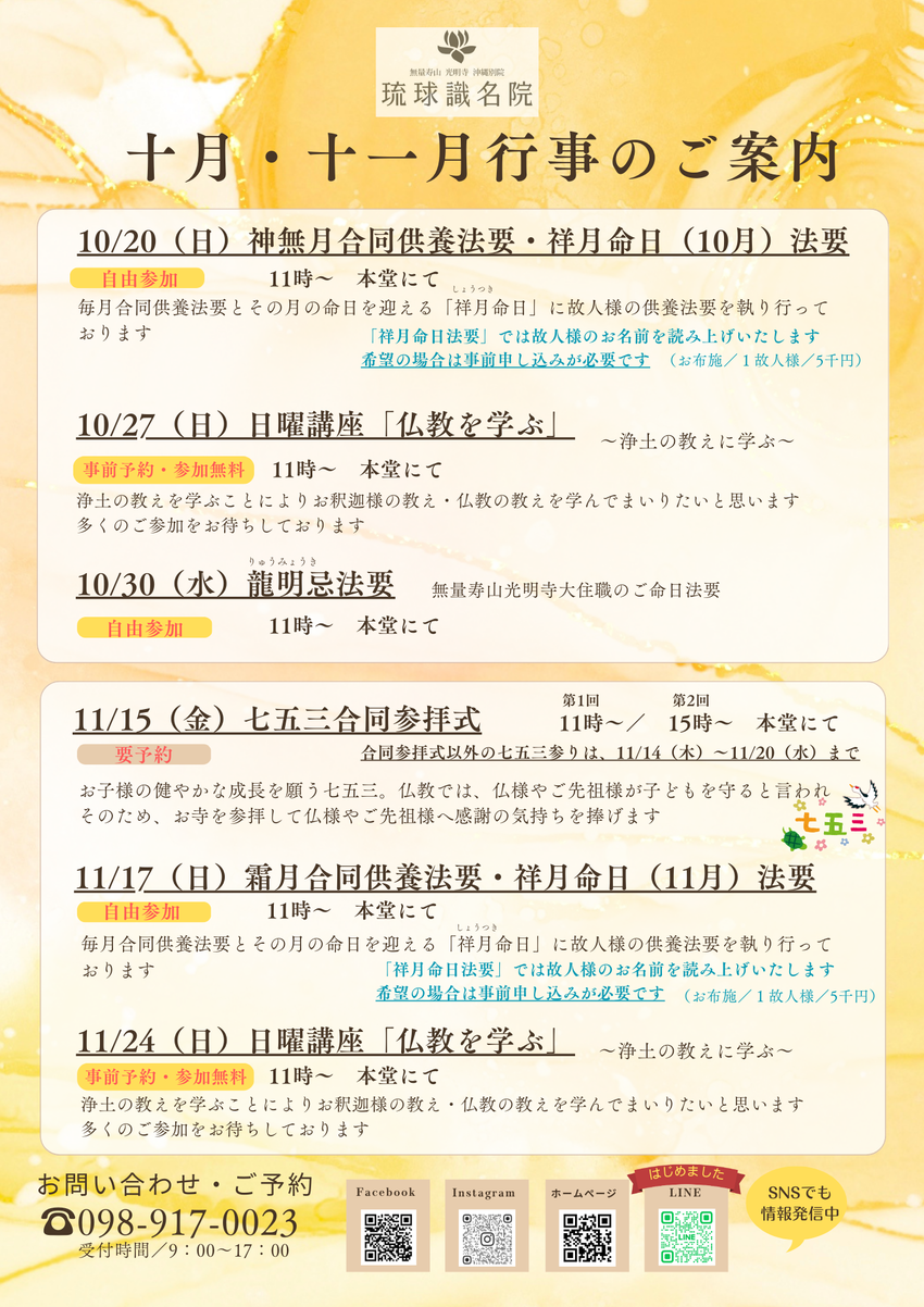 【琉球識名院・十月・十一月行事のご案内】