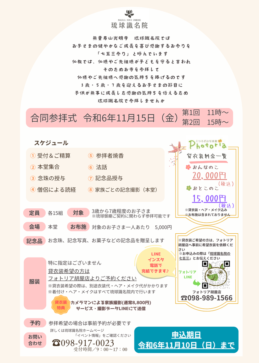 【イベント案内】【「琉球識名院で七五三」七五三合同参拝式のご案内】