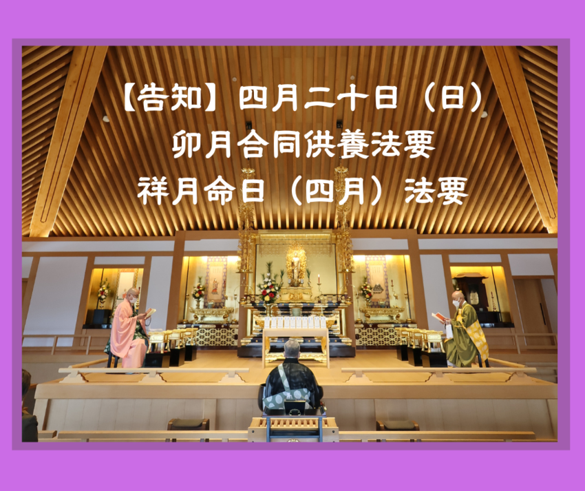 【告知】四月卯月合同供養法要・祥月命日(四月)法要
