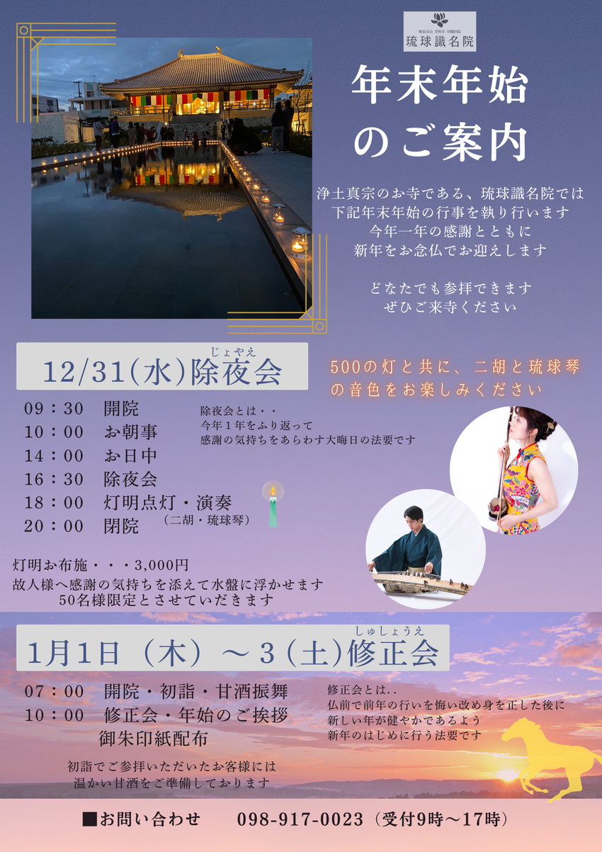 琉球識名院では、下記の日程にて年末年始の行事を執り行います。